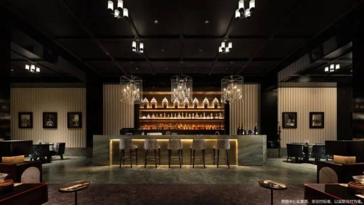 建筑面积约1500m²恒温泳池会所及落差达约10米的水幕下沉式园林的打造,在奢石、臻材等元素的空间应用中,让显贵世家的社交场景,相映于粼粼碧波的柔光之中,于方寸之间游离世外。
