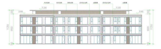 外立面采用米白色、深灰色、香槟金铝板、金属格栅及仿石涂料。