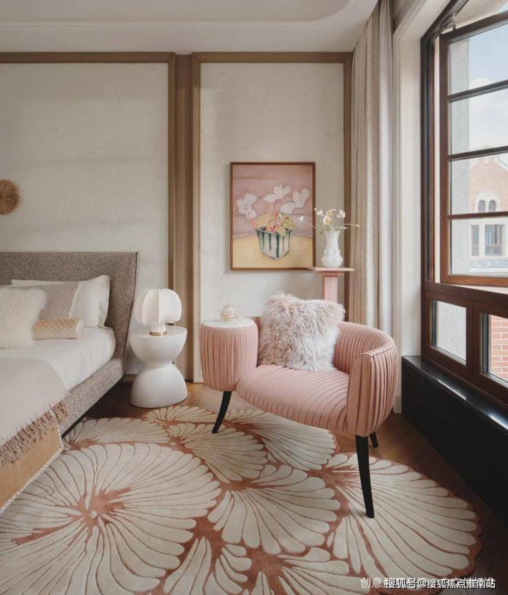 大宅的2F,充满戏剧的张力。推开主卧套房对开的玻璃木门,揭幕二人世界的情节,超大开间的卧室,将进深空间布局成露台、卧床、走廊三进的隔断,创造空间的主题感和层次性。先生与太太各自专属的衣帽间与梳妆台,即便是朝夕相处的爱人,也有意保持相对小尺度的私密体验,留有转身、擦肩、照面的邂逅感。