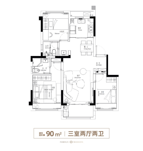 项目精研都市家庭的生活习惯和空间需求,打造约126㎡四居、108㎡三居、90㎡三居三大主力户型,关照每位家庭成员的居住体验。