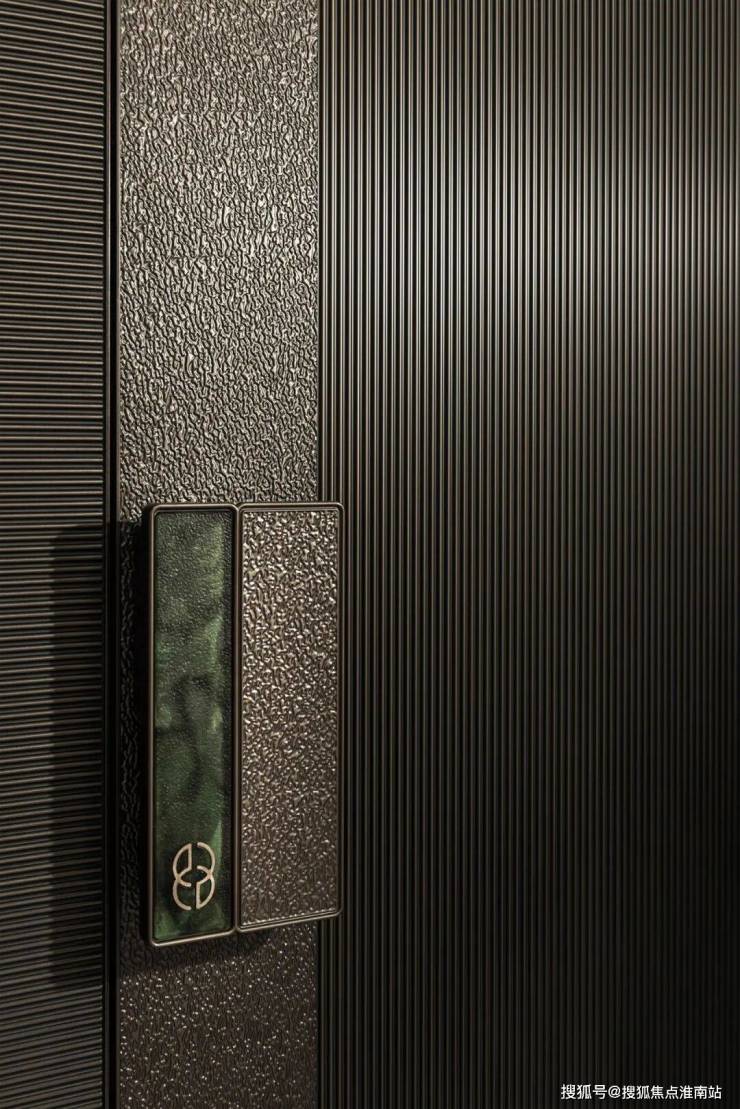 初见礼仪, 铸钢甲子母门搭配内嵌琉璃门锁,自显门楣;玄关处点缀 银河金与客厅 星耀灰大理石,共著一副朦胧水墨共赏国际东方意境。
