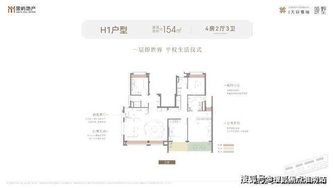 延续了3S墙和双270°全景双舱的亮点,尺度感进一步提升。南向四开间保证了更充沛的阳光,客餐厅与超大尺度阳台贯穿南北,进门视野无遮挡,大宅气度油然而生。