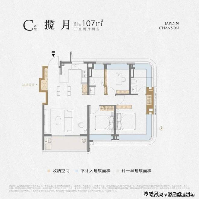 建面约107㎡的户型则刷新了我们对百平三房的认知