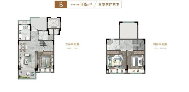 约85㎡三室两厅两卫