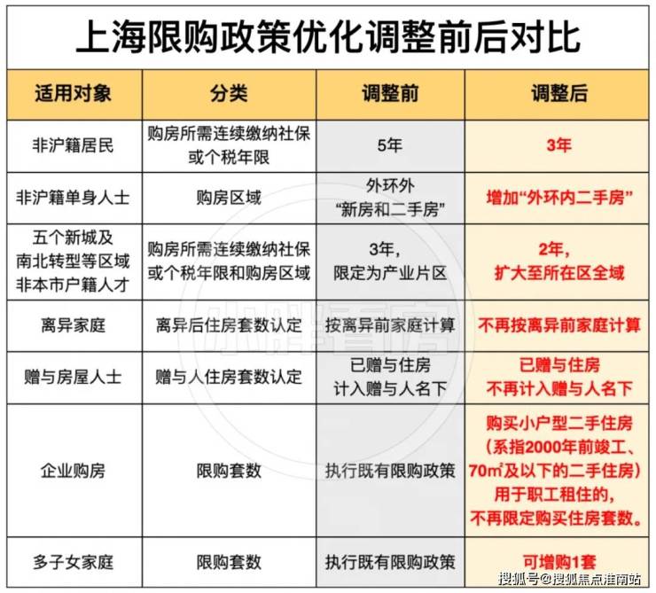 购房资格上,非沪籍购房社保或个税5年改3年,离异购房不再倒算,赠与住房不再计入赠与人套数,二孩及以上家庭多买1套。