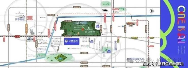 深嘉上府距离规划中的地铁14号线西延伸线同济大学站直线约300米,是真正意义的地铁盘。(数据来源:百度地图)