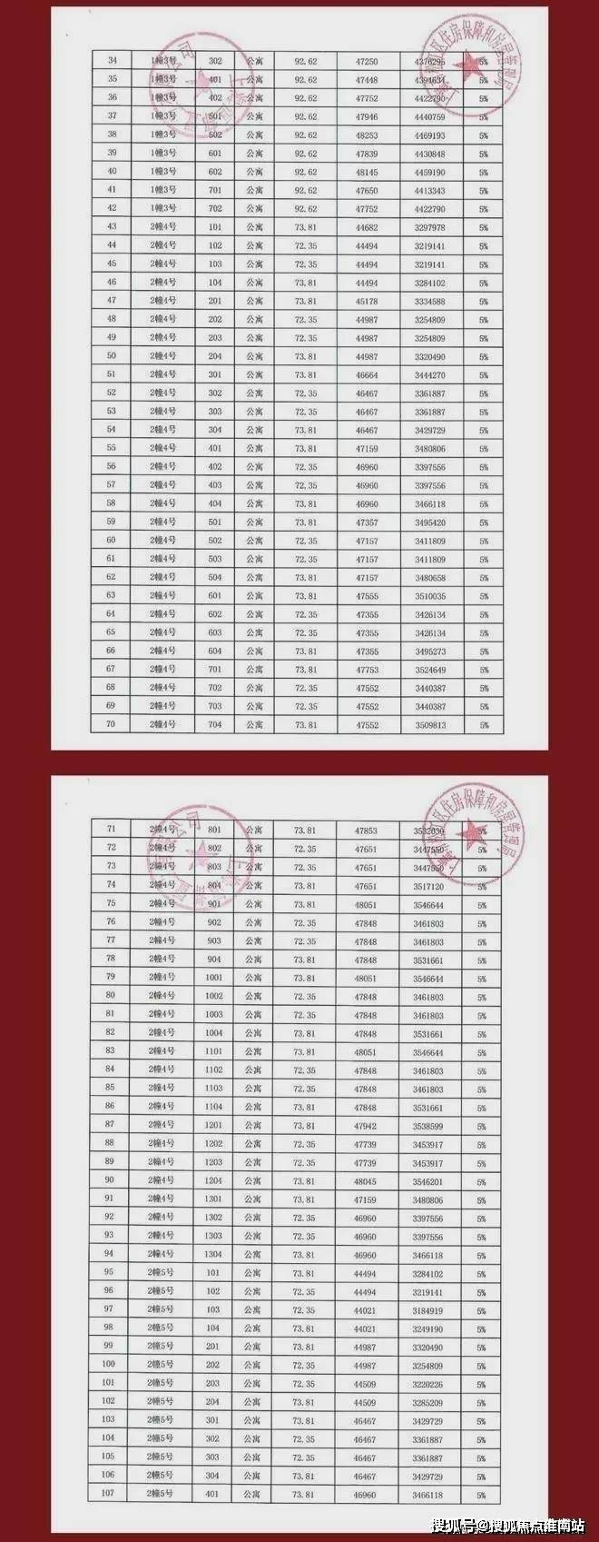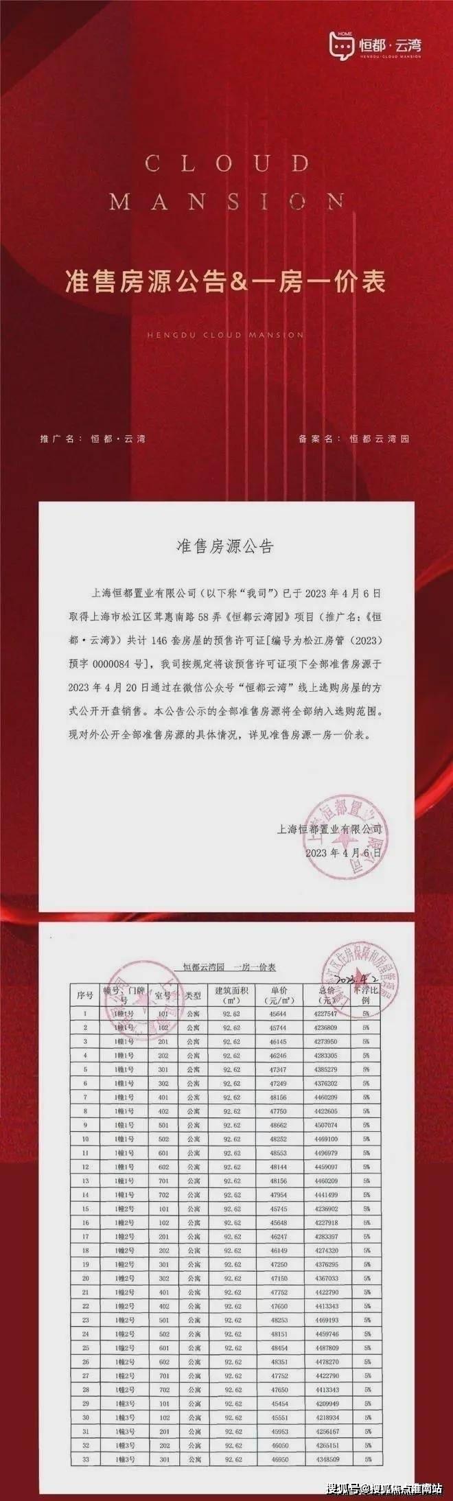 项目一房一价表