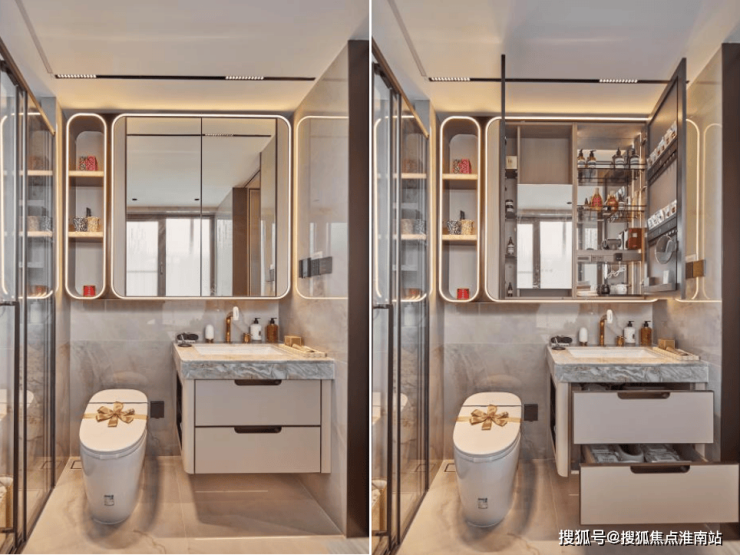 保利天奕特别关注到女性的生活需求,专门在卫生间配备了科勒美颜龙头、美妆镜柜、美妆冰箱,采用“顶+面双补光照明”,能把“女本位”需求做到如此细致,目前没有几个项目能做到!