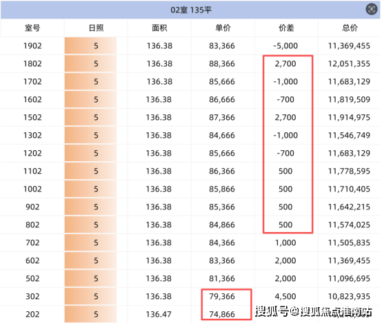 135m²边套户型惊现这次的“彩票房”,2楼单价只要7.9万,真的拼手速!后面新房的y户型都不得有这个价格。中高区的价差也在500元左右,价差较小。