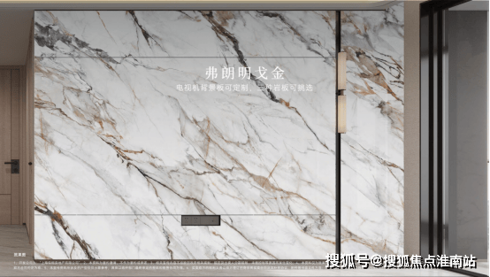 充分考虑业主的个性化需求,在电视背景板提供了新潘多拉、云中翡翠、弗朗明戈金三种结晶釉面岩板选择,成本更高,施工难度也更大。