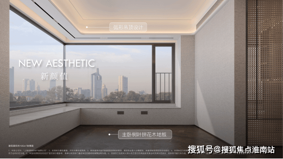 项目大量使用奢石设计,客厅四边弧形天花、主卧树叶拼花地板、精致优雅的骨骼线设计,都是开发商花费更大成本和耗材去呈现更美的视觉体验。