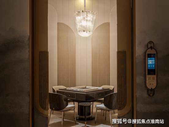 私宴厅&棋牌室承载了业主宴请、聚餐、洽谈、品茗、娱乐等多元社交场景。私宴厅当中悬挂的石材,来自项目团队多番挑选,来自一个奢石展馆里的孤品,不仅拥有昂贵的蓝色色泽,天生的羽毛状纹理更是罕见!
