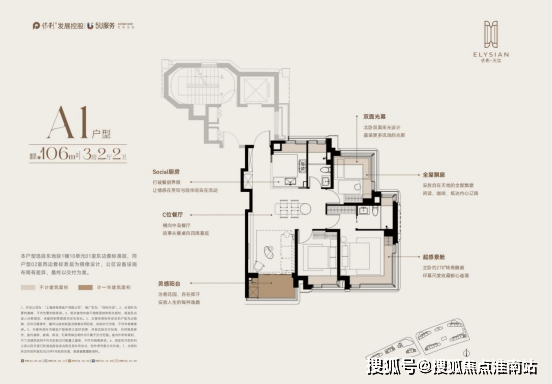 6个飘窗满飘窗赠送+北次卧270°转角飘窗,半开放式厨房+大空间餐厅+S墙设计,均价是所有户型中最低的7.85万/㎡。