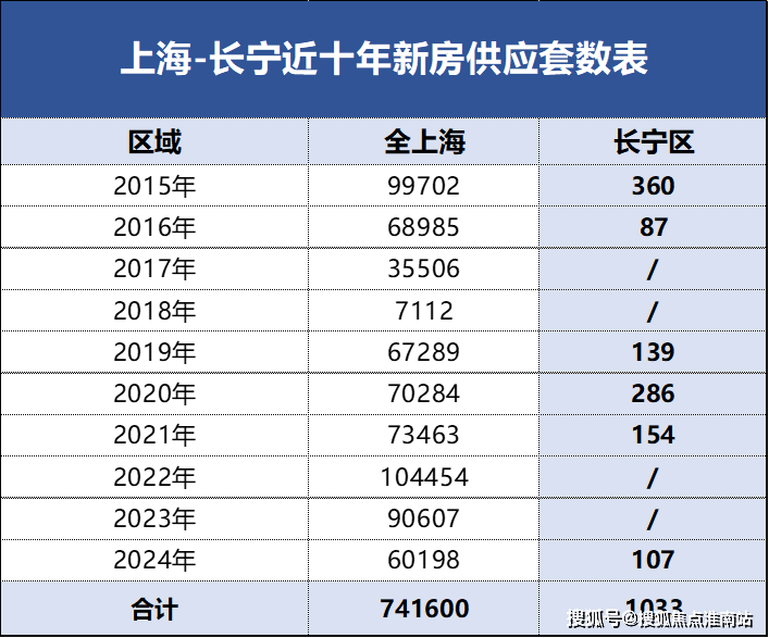 另外,放眼整个长宁,就能发现长宁新房供应极其稀少,2015-2024年整个长宁区新房供应仅1033套,仅占全市的0.11%,不足1%!