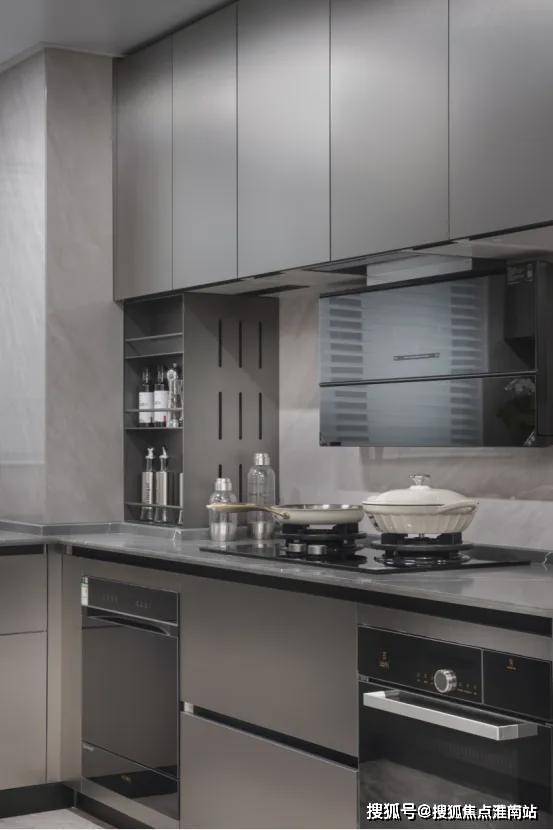 厨房:U型动线设计、高端厨电品牌、人性化设计(双玻璃移门、餐厨地面一体化,后期卫生不留死角)