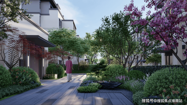 在小区内部景观设计上,项目打造了一湖·两园·十二境景观结构。