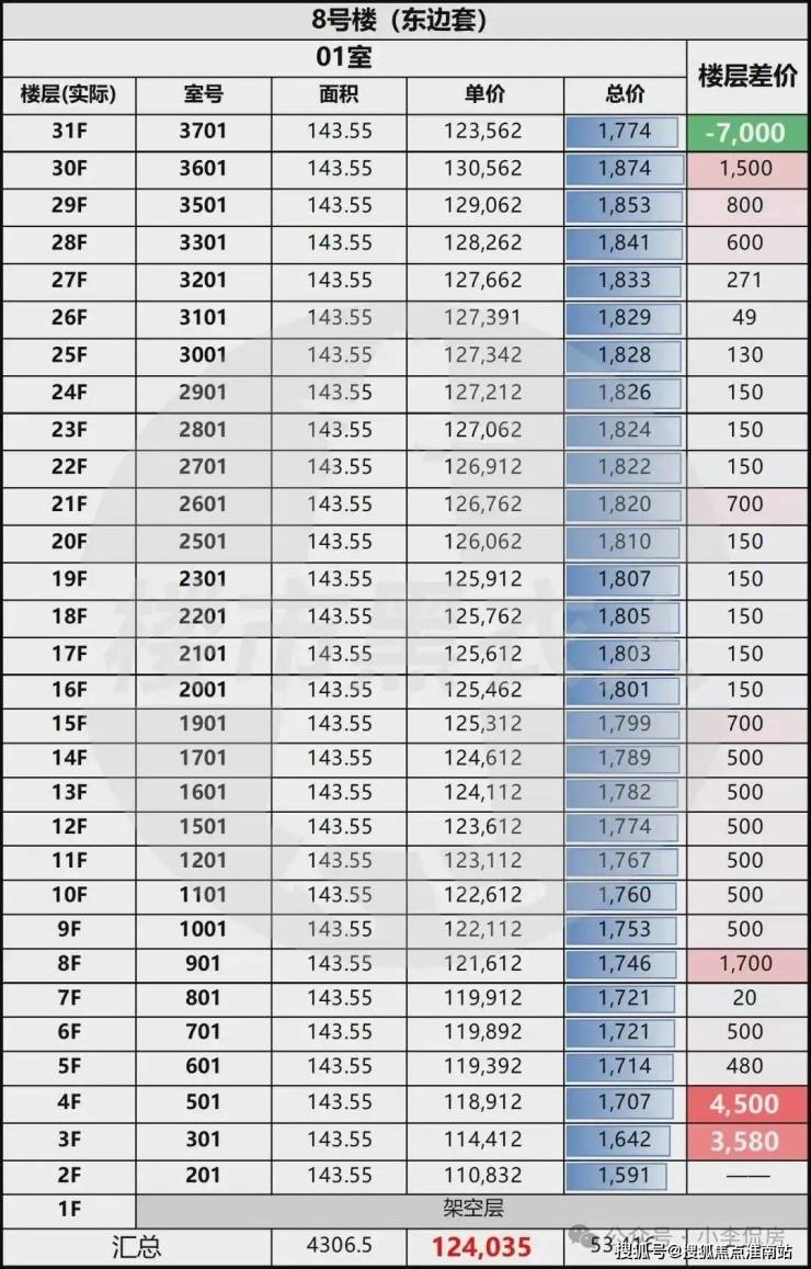 这一栋楼的楼层定价不算复杂,但对高区客户非常友好:体验跃迁很大,价格递增却相对克制,所以更适合“从高往下挑”。这句话你一定要反复强调,因为它能把很多人的“预算焦虑”直接按住——高区不是一定贵得离谱,相反很多时候是“贵得合理、值回票价”。