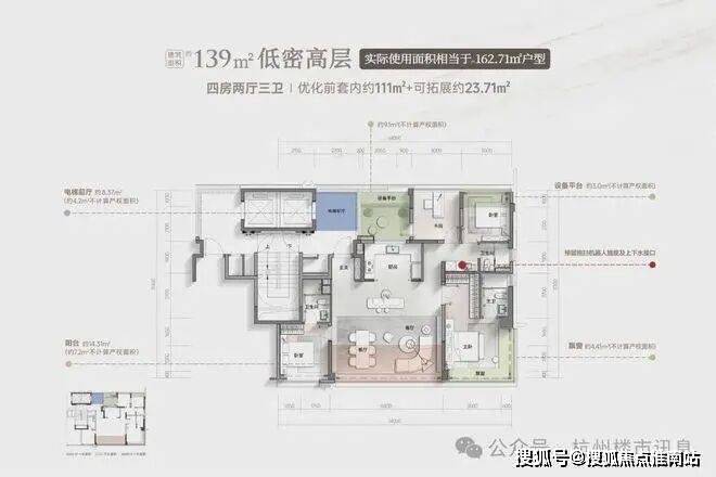 ③高层约108㎡(四房两卫)➕128㎡➕139㎡(四房三卫)、叠墅约225㎡(户户私家电梯,6.6地下室挑高)保