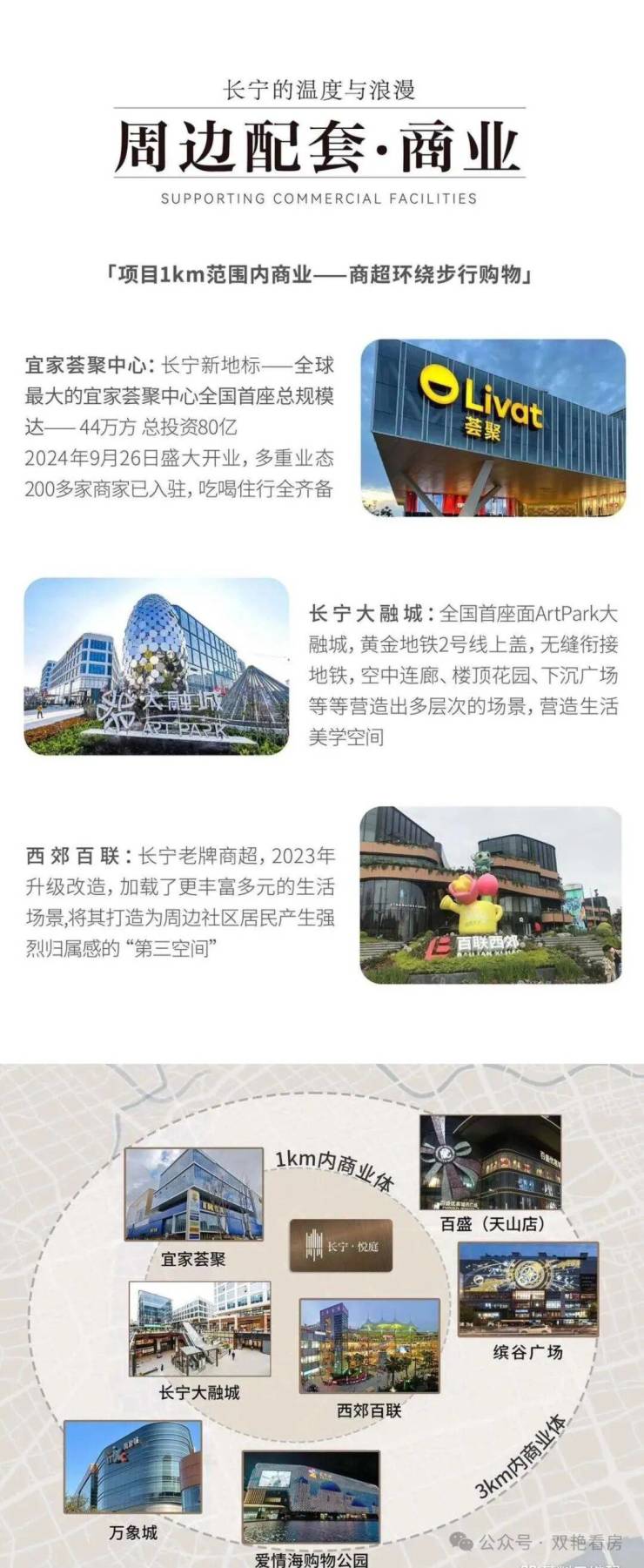 商业:3km内虹桥天地/龙之梦/环球港;步行10分钟达大融城/西郊百联