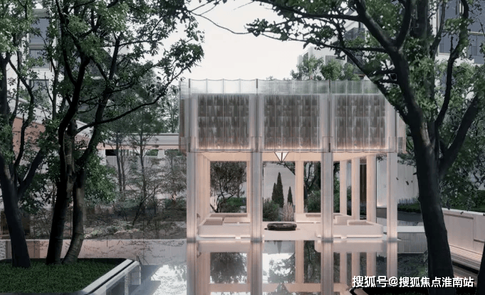 伴水归家,羽毛枫四时变幻的叶色,提醒每一位归家者:踏入此门,便是告别喧嚣,回归内心的静谧与从容。约5米宽的流光回廊,打造无风雨归家体系,以香槟铝板为顶、辅以黄金比例柱列,涌泉水钵,展现了【水】的不同表现形式。