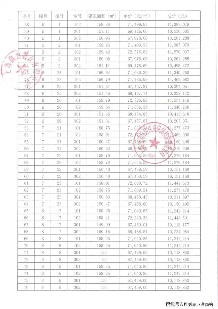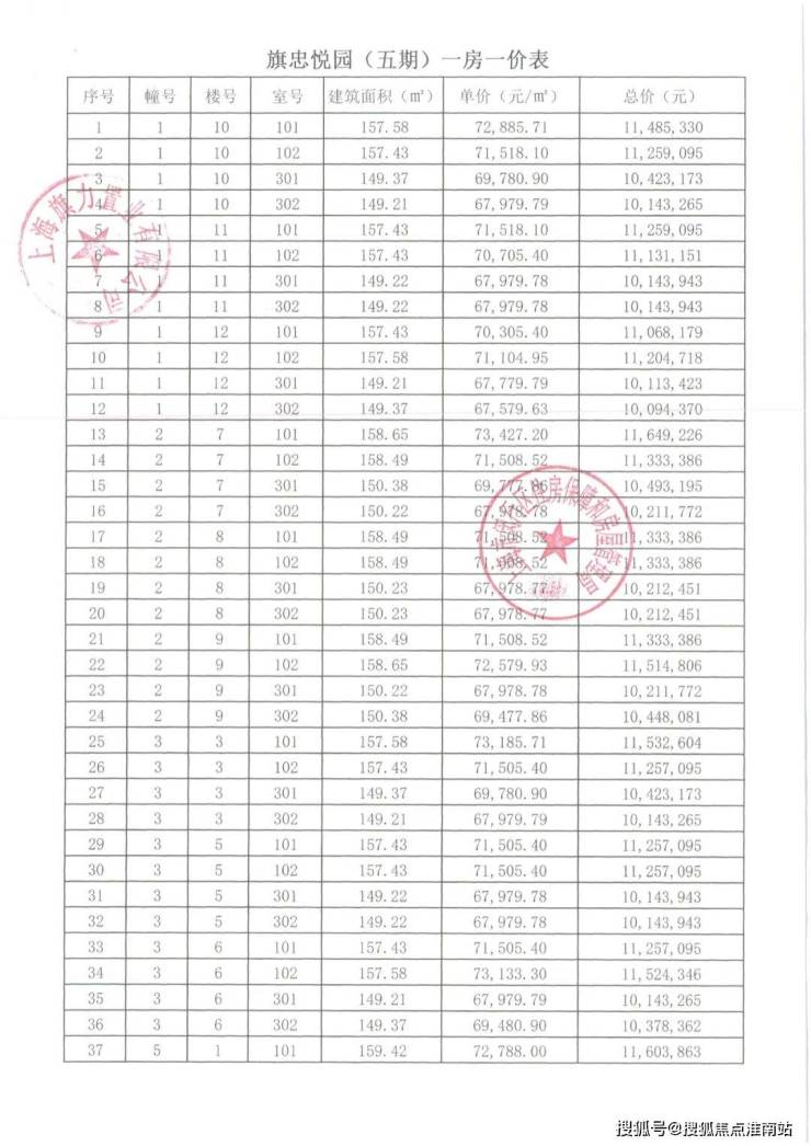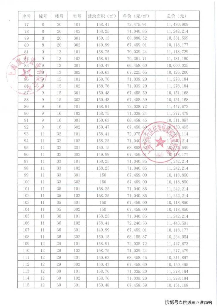 崇明某触发积分项目部分一房一价表