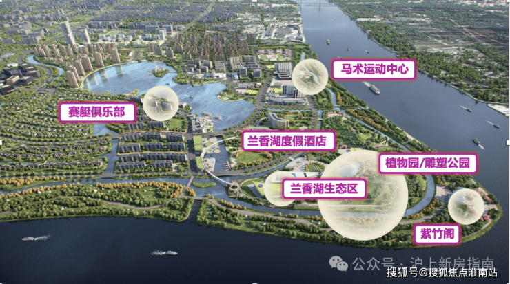 地块所在的紫竹区域占据浦江上游第一湾独特地理位置,核心区域有闵行第一大湖兰香湖,水域面积广阔,岸线绵延,湖光潋滟。
