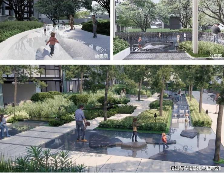 在细节营造方面方面,项目打造“社交花园、睡莲花园、森之花园、流水花园、童趣花园、水岸花园、时光花园”共七大活力主题花园,穿插在楼宇之间,定制每一栋独特的生活场景。同时还营造了三片戏水活力场,随着社区水流的流淌,形成“溪谷、悬瀑、落泉”不同的水景剧场。让生活场景向水而生,并逐渐向园林渗透,最终融入其中,形成水与景的和鸣之势,营造自然之上的意境。