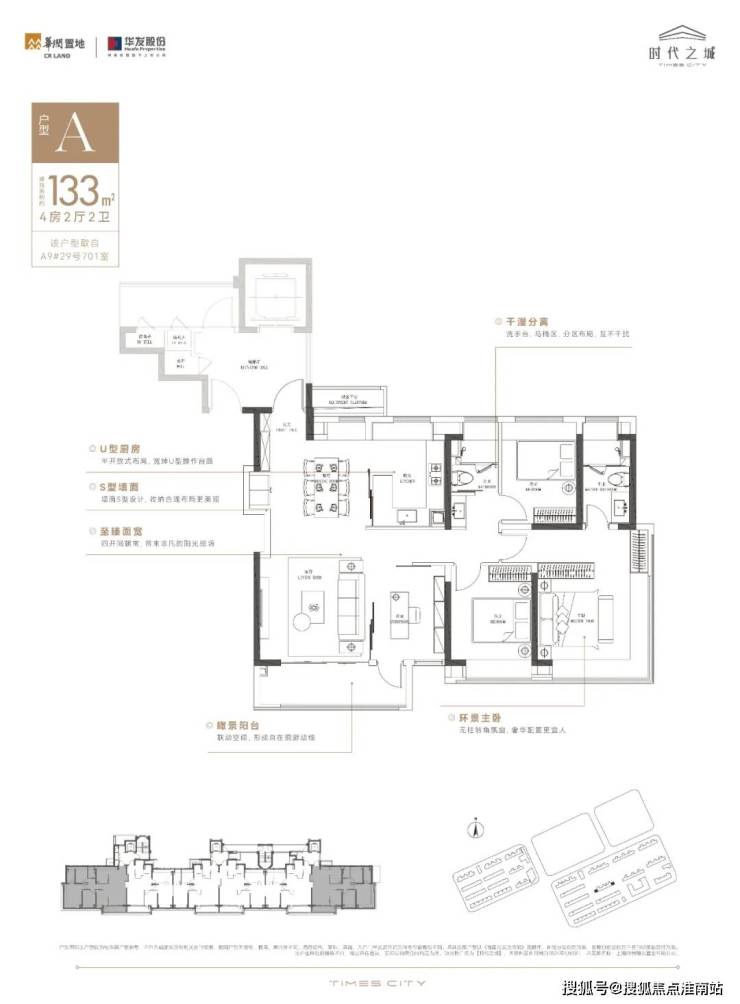 建面约133㎡4房(小高)约5.9m大面宽大横厅+主卧270°转角窗