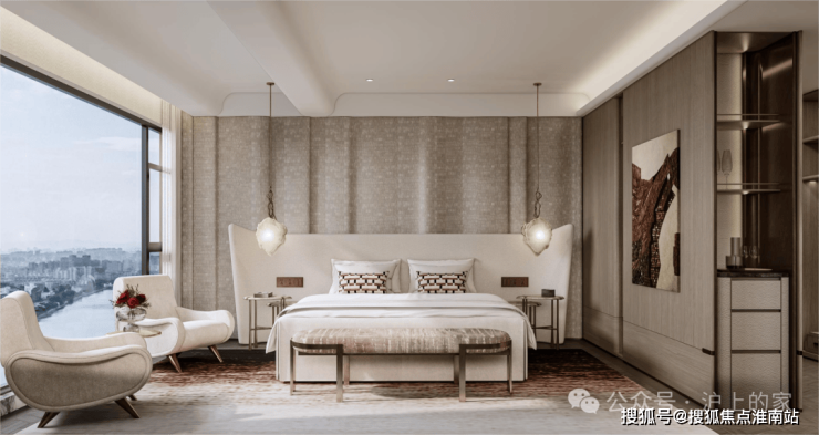 主卧套房奢享无柱转角飘窗,将自然光影引入室内,,四季更迭皆成风景。