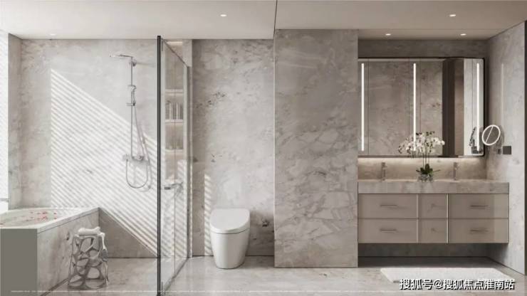卫生间更是配备了美妆冰箱、高仪(或同档次品牌)花洒,主卫配有松下(或同档次品牌)智能一体马桶。