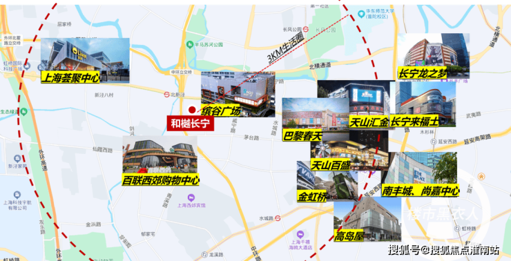 逛街购物,家门口有逛不完的商场和日本超市,天山路上 汇金、百盛、 巴黎春天、 金虹桥、 南丰城、 缤谷广场等各具特色的购物中心一路排开;加上不远处的中山公园商圈,商业总面积高达近百万方。