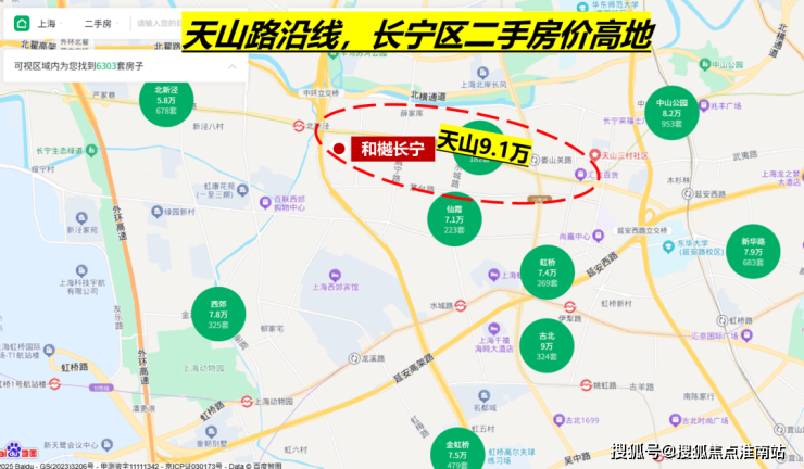 如今, 长宁买房的价值高地就在天山路。在链家APP上, 长宁的天山板块挂牌均价是最高的。