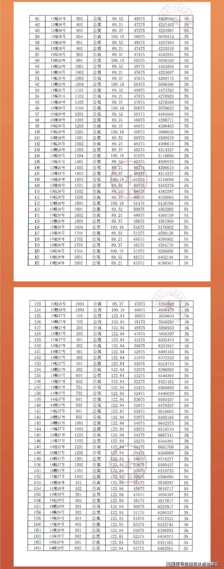 前期一房一价如下