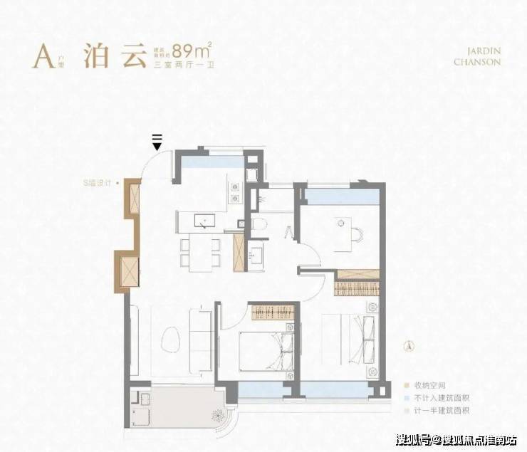 建面约89㎡三房:S墙设计+全飘窗,厨房带飘窗开创性扩容,约4.7米的客厅面宽,小户型亦有“成长性空间”。