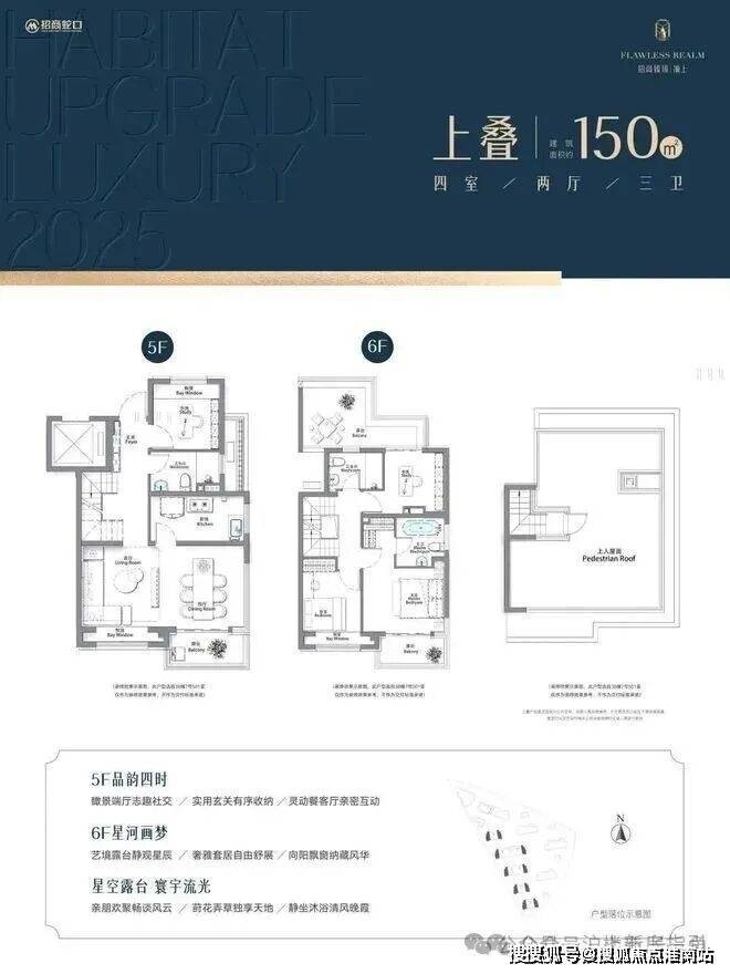 项目另有建面约95㎡ 3房户型及叠加别墅产品,叠加别墅总价约1100万级,户型图如下:招商臻境售楼处电话4008567004☑️☑️