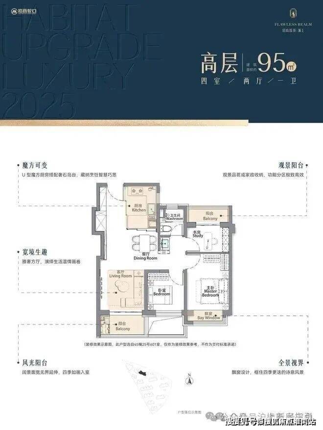 建面约95㎡高层,全系方正户型,双阳台设计,LDKB一体化设计,贯通动区轴线,打造温馨的家庭生活聚餐;招商臻境售楼处电话4008567004☑️☑️