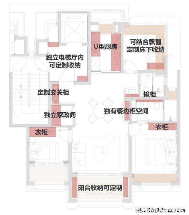 建面约115㎡户型收纳解剖