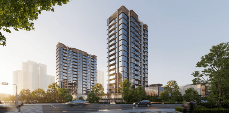 在建筑设计上,GOA大象设计跳出常规住宅的方盒子形态,以徐汇作为中国现代音乐发源地的文化基因为灵感,将“乐器王后”大提琴的优雅弧线,转译成建筑立面的二维曲线语言