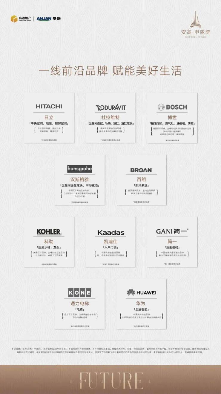 日立中央空调、地暖双联供、百朗新风系统等三件套一应俱全,厨电方面选用全系博世四件套、卫浴方面选用杜拉维特&汉斯格雅等品牌。