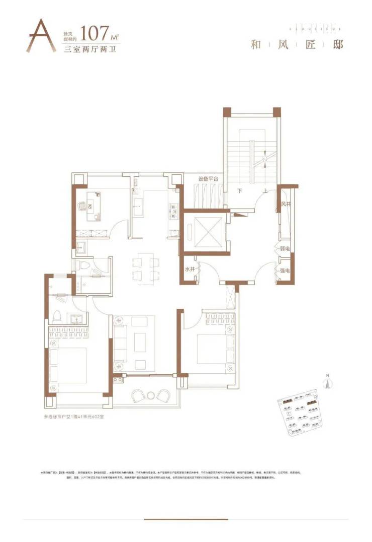1)建面约107㎡三房两厅两卫——实用性的王者