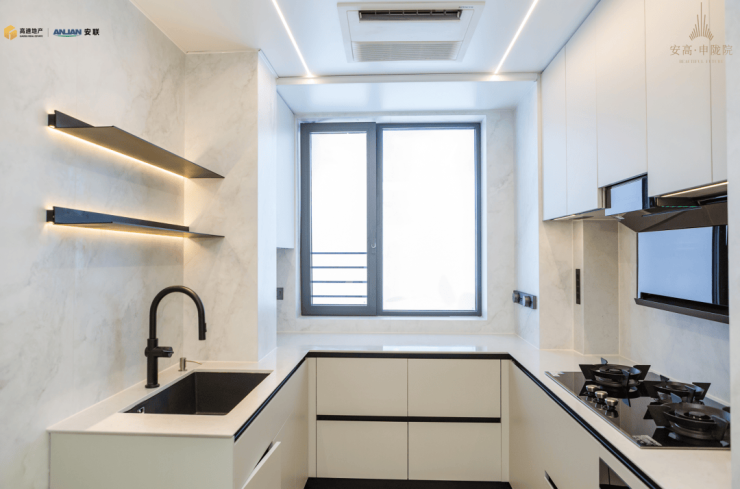 厨房利用飘窗做空间拓展,整体操作面积大大增加,业主可以在台面上自由放置各种小家电。