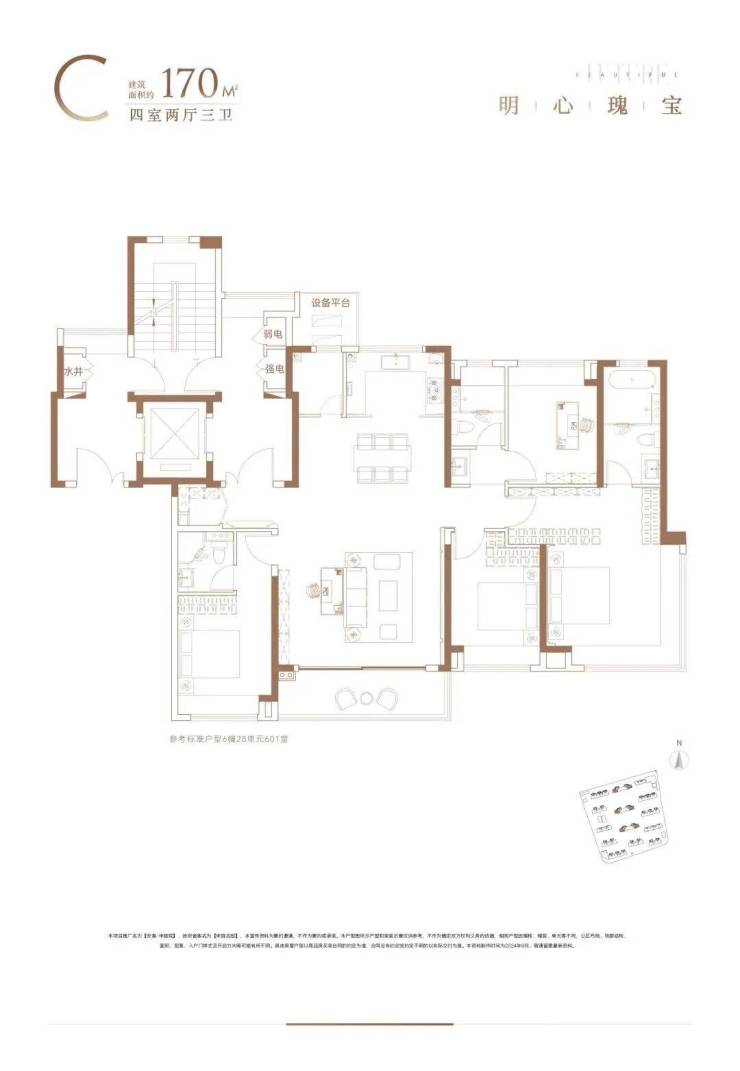 3)建面约170㎡四房两厅三卫——尺度感的王者