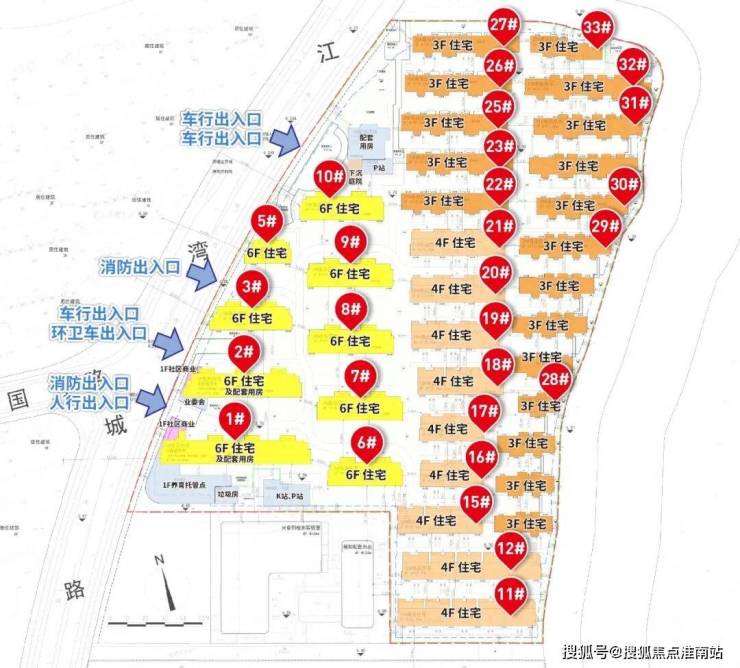 (2)沿河布局:一线临河道+绿化的楼栋总共17幢。采取了东高西低的策略,其中东侧和北侧7字型排布3F联排别墅,其后依次布局4F叠墅与6F洋房,使前排建筑不遮挡后排视野,超过半数楼栋可享受水系与公园景致。