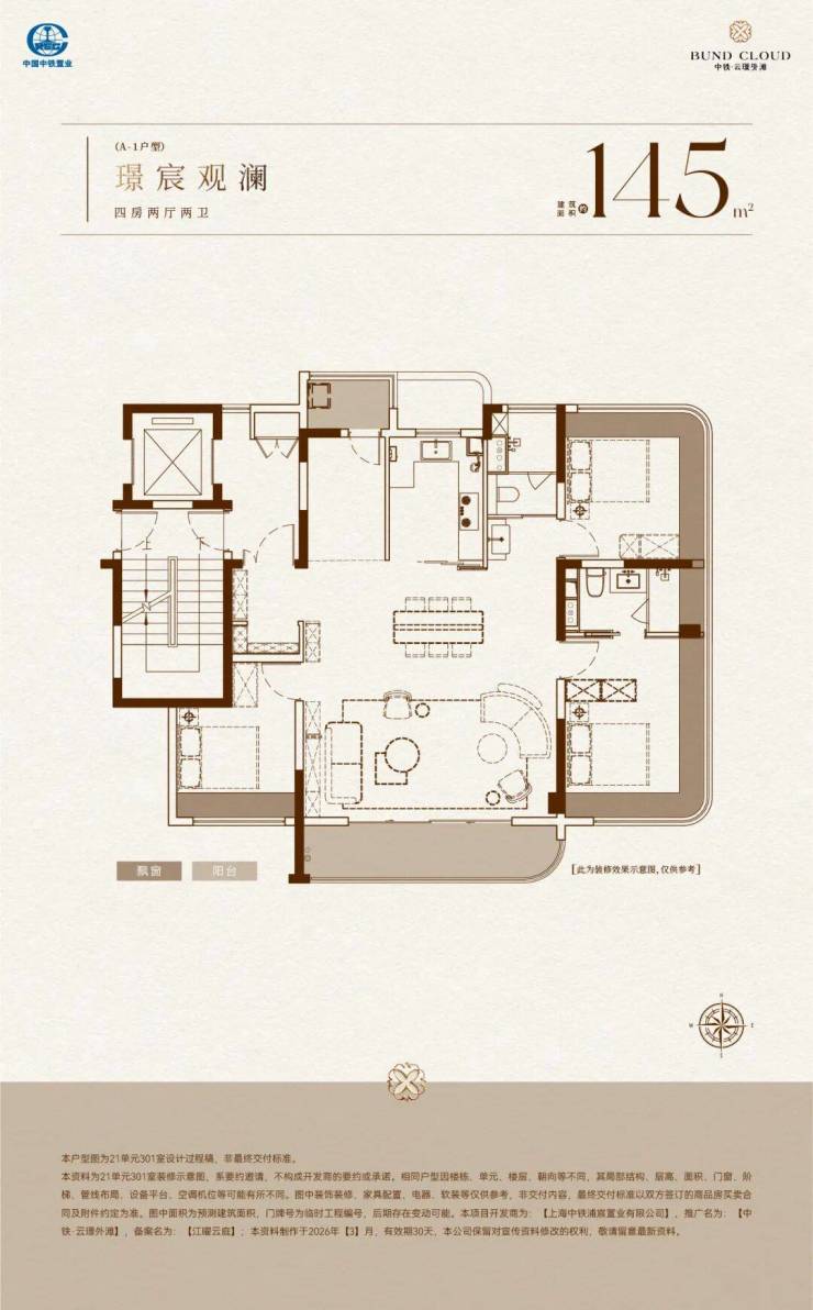建面约145㎡4房户型