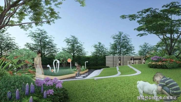 南侧秘密花园长廊,以曲径通幽的游园步道串联,亲子花园、动能花园、艺术花园、疗愈草坪等多元景观空间,为社区生活增添一份缤纷浪漫。