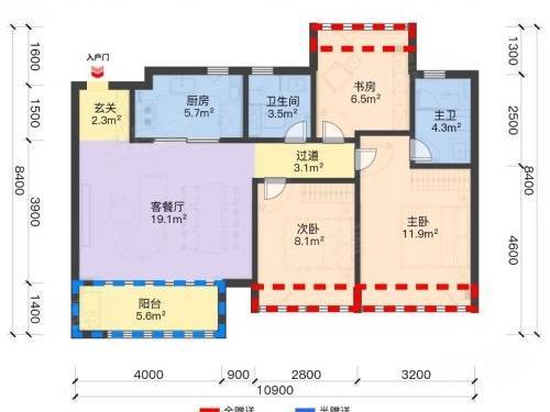 亮点:三开间朝南,全明飞机户型