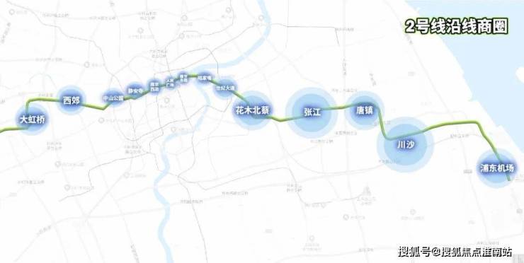 展开地图不难发现,整个上海的核心交通枢纽(虹桥+浦东机场),顶级商务CBD(南京路、陆家嘴、人广、静安寺、中山公园、张江等),和高尚住宅区(西郊、碧云、唐镇)全部都被2号线串联起来。