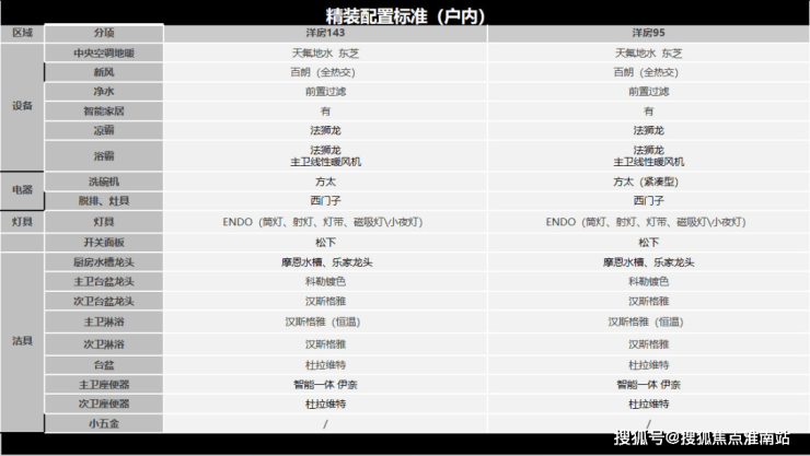 东芝或同档品牌中央空调、地暖以及百朗或同等品牌的新风,三大件配齐。