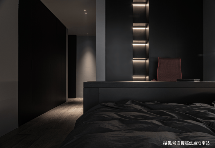 纵观整体不难发现,室内有着极简的影子,相较于白色空间的纯粹,这个黑色的空间蕴藏了更多的情绪力量,在热情的呼应下,逐渐展现了黑色自带的温暖。
