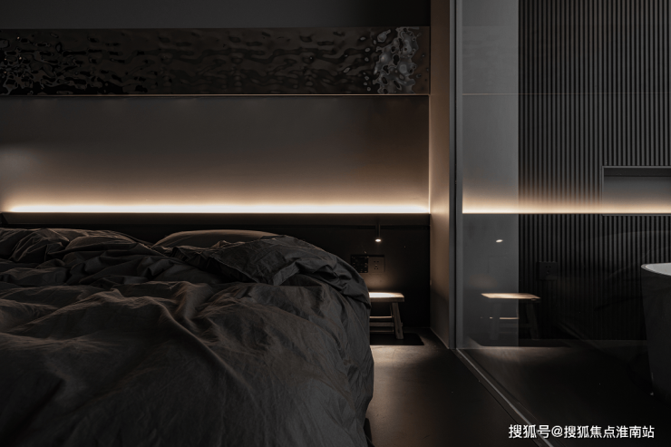 另一间卧室的布局更加大胆,床边的一侧既作为书桌使用,也作为床边墙使用,完美的实现了室内的减负,另一侧则打造了一处独立的浴室,空间动线也因此而改变,拥有了更多的可能性。